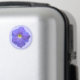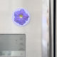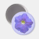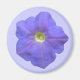 Esta design apresenta uma foto de uma petúnia azul com tons de roxo e um centro branco em um ímã.