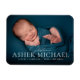 Anúncio de nascimento. Anúncio do bebê. Garotinho. Menina, neutra em gênero. Foto. Olá. Olá, Bebê. Negrito. Moderno. Contemporâneo. Azul. Íman.