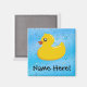 Squeak vai para o pato de borracha. design personalizado legal com um caráter amarelo brilhante e um fundo de água borbulhante azul. Perfeito para o tempo de banho, piscina ou apenas diversão.