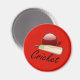 Boca e bola de críquete (etiquetada) sobre fundo vermelho vibrante