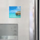 Imagem de Fridge souvenir de um bangalô sobre-mar, na lua de mel, num resort de luxo, na clara lagoa azul da ilha pacifica de Bora Bora, perto de Tahiti, no arquipélago da Polinésia Francesa, com o texto "Bora Bora".