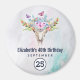 Ímã de aniversário save the date com um fundo de aquarela turquesa e pastel. Uma caveira de animal boho chic com um bouquet floral sobre a cabeça e borboletas a voar.