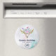 Ímã de aniversário save the date com um fundo de aquarela turquesa e pastel. Uma caveira de animal boho chic com um buquê floral sobre a cabeça e borboletas pequenas voando ao redor.