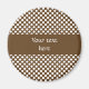 Design de bolinhas castanho e branco. Bolinhas brancas sobre fundo castanho escuro.