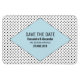 Bolinhas modernas simples e sofisticadas e quentes salvam o ímã flexível de data com uma camada em forma de triângulo azul claro e um fundo bolinhas em forma de branco e preto delicioso. Esta imã salve a data geométrica clássica e minimalista é fácil de personalizar com seus detalhes de casamento. Localize mais opções de personalização clicando em Personalizar.