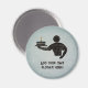 A pessoa que segura um bolo nesta design tem a aparência de um sinal de metal que foi estampado e pintado. Excelente para um homem na cozinha que quer algo um pouco mais masculino. Também é um motivo divertido para uma celebração. Você pode adicionar qualquer texto, de desejos especiais a um nome, empresa ou frase engraçada.