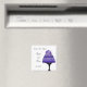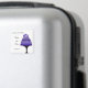 Bonito bolo roxo em camadas com flores e folhas verdes e suaves em cima, fitas pretas que caem sobre um suporte de bolo preto. . Personalize com todas as suas informações conforme desejado.