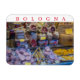 A beautiful photograph of a food shop window display in the city of Bologna in Italy printed on a souvenir fridge magnet.