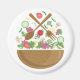 Uma taça de salada de madeira de estilo retro com vegetais saudáveis. Garfo e colher de madeira. Totalmente personalizável. Excelente para restauração, chef pessoal ou proprietário de restaurante. Ilustração original por pj_design