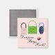 Três bolsas de moda em rosa, verde e azul com detalhes exclusivos. Um ditado legal e um pouco de coração vermelho acentuam isso.