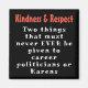 Engraçado e simples, mas verdadeiro - "Bondade e Respeito... duas coisas que nunca devem ser dadas a políticos de carreira ou Karens"