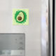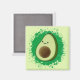 Estilo de desenho animado bonito. Ímanes personalizados. Design desenhado à mão com abertura de tinta verde no fundo. Dar uma ideia para pessoas de todas as idades que amam abacates e legumes fofos.