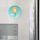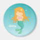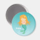 Personalize um ímã para a garotinha com essa linda sereia com design de cabelo laranja! A sereia está nadando entre as ondas no mar. Ela tem um acessório de estrela no cabelo e está vestindo conchas de moluscos bikini. Um padrão ondulado para o fundo. Para meninas que amam a fantasia ou o tema oceânico.
