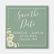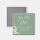 A imã salve a data bonito apresenta cores brancas de água canto sobre o fundo verde basilar com blocos de texto personalizáveis brancos em fontes modernas
