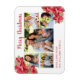 Imagem bonito de poinsettia com tipografia de script Mensagem de Natal feliz e nome da família. Este ímã é perfeito para compartilhar a beleza da época de férias.
