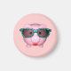Ela é uma porca. Ela é bonito. E ela está vestindo batom e óculos de sol fantásticos. O que mais se pode dizer? Cor de fundo personalizável.Direitos autorais da imagem 2013 por Margaret E. Cmelik.