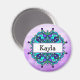 Íman de design abstrato de mandala azul e roxo bonito. Adicione o nome de alguém na área de personalização.