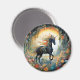 Magneta de Unicórnio Florestal Encantada, uma adição deliciosa e caprichosa ao quarto de qualquer menina. Esse ornamento colorido apresenta um unicórnio negro cativante com um mane radiante de cor arco-íris, colocado em uma floresta mágica e encantadora.
