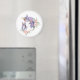 Um ímã com uma elegante ilustração aquosa com uma mãe aquarela e um unicórnio bebê com homem roxo e forelock. Flores de laranja delicadas rodeiam o par.