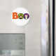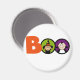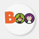 Camisetas bonitas e coloridas do Halloween, sacos de tote, cartas, adesivos, canecas e outros presentes do Halloween com uma bruxa e um frankenstein que lê BOO!