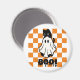 Traga um 'Boo!' divertido para sua geladeira com este charmoso ímã de Halloween. O design apresenta um gato preto giro e um fantasma contra um fundo legal. Uma maneira divertida de entrar no espírito do Dia das Bruxas e adicionar um toque fofo à sua cozinha ou escritório. Um presente de excelente para amantes de gatos.