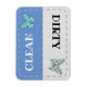 Azul, preto, branco, cinza, íman de máquina de lavar louça limpa e suja com borboletas azul-turquesa padrão de bolinhas. Sacudir o ímã para informar se os pratos estão sujos ou limpos.