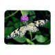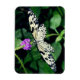 Essa borboleta de papagaio branco é uma grande ninfa de árvore também chamada de borboleta de arroz. É um parente da borboleta Monarca. Ele bebe néctar de uma flor roxa isolada sobre um fundo de folhas e vinhas verdes.
