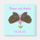Pintura de duas lindas borboletas marrons sobre uma flor rosa, impressa em Save the date magnets. Personalize facilmente os nomes e a data no modelo. Para escolher uma cor de fundo diferente, clique em Personalizar, em Editar, em Segundo Plano e, em seguida, na cor escolhida. Procurar amostragem de produto correspondente: