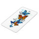 Borboleta azul-clara e voadora morfo e borboleta-monarca laranja num fundo branco. Morpho. Borboleta monarca. Design com borboletas.
