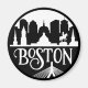 Esta nova ilustração a preto-e-branco do horizonte de Boston apresenta muitos marcos familiares, incluindo o edifício de capitais, a torre de casas personalizadas, os edifícios Hancock, Old Hancock e Prudential, bem como a ponte Zakim e o distrito financeiro.