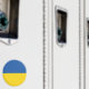 A bandeira da Ucrânia é uma faixa de duas bandas horizontais, de tamanho igual, de azul e amarelo. O topo representa o céu e o amarelo representa o trigo. Bandeira Nacional da Ucrânia