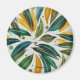 Folhas de vários tipos feitas em aquarela, espalhadas umas das outras, em cores verdes e amareladas, simulando a chegada do outono.