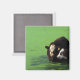 Vacas mergulhando em uma lagoa cheia de algas para se manter legal.