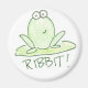Desenho de um sapo com a palavra RIBBIT! escrita por baixo.
