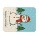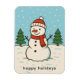Um imã de Natal bonito com uma ilustração divertida de boneco de neve com a saudação editável "Felizes Feriados".