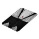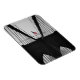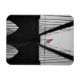 Vintage Brooklyn Bridge black and white photograph featuring the arches and steel wires of Brooklyn Bridge in black and white with the only color being the united states flag. This photograph is perfect for anyone who loves New York or the vintage urban photography aesthetic.