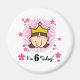 Brunette Princesa com flores cor-de-rosa bonito, design de 6 de aniversário.