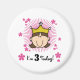 Brunette Princesa com flores cor-de-rosa bonito, design de aniversário de 3 anos.