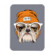 Este design apresenta um retrato de buldogue em um chapéu de hipster e com óculos.