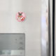Um belo buldogue francês com uma bolinhas vermelha de moda na boca, pintada pela artista Maryline Cazenave.