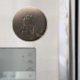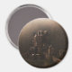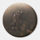 Imã fotográfico redondo com o castelo medieval Burg Eltz, construído sobre uma colina rodeada por florestas com árvores em cores de outono no nevoeiro matinal no nascer do sol, criando uma imagem assustadora perto do rio Mosel, na Alemanha.