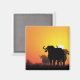 Uma manada de búfalos de Cabo em silhueta contra os incêndios do sol de pôr. Computação de Kathie Miller.