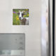 Este ímã apresenta uma cabra bonito em um campo de flores silvestres.