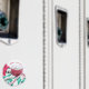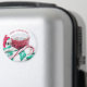 Um imã de natal com uma fotografia de Natal confortável e quente. Uma xícara quente de cacau com marshmallow numa caneca de bolinhas branca e vermelha. Uma cana-de-açúcar listrada descansando sobre um cachecol verde e listrado branco coberto de neve. Algumas luvas vermelhas descansando em cima também cobertas de neve. Feliz Natal escrito em texto curvado usando uma fonte moderna. Uma bebida quente depois de entrar do frio realmente atinge o ponto. Uma foto festiva de férias.