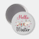 Uma bela ilustração de cão de patinação no gelo e as palavras: Olá inverno.