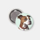 Trabalho de arte foto-realística que mostra um close-up de um cão com um casaco marrom e branco, vestindo uma coleira e virada para a direita, com um fundo sereno destacando suas características detalhadas.
