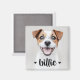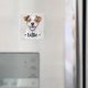 Imã de geladeira de fotos com a foto personalizada de seu animal de estimação com o nome do animal de estimação como uma sobreposição de texto preto (ou personalizado) flanqueada por dois corações.