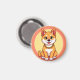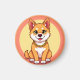 Ilustração encantadora de um cachorro de desenho animado fofo, sentado em um fundo circular vibrante. Perfeito para ilustrações infantis, temas de animais de estimação e designs alegres.