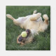 Imã Cachorro deitado de cabeça para baixo no capim com