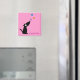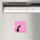 Bonito imã de geladeira quadrada rosa com um lindo cão de desenho animado preto observando borboletas e as palavras "Lovin' Life" Texto e cor de fundo são totalmente personalizáveis - um monte de fontes e cores para escolher. Visite minha loja Sober Princess para ofertas únicas e divertidas para pessoas em recuperação de álcool e vícios (e seus cachorros) - e presentes com mensagens espirituais/inspiracionais. Todas as ilustrações criadas por um alcoólico em recuperação.